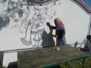 Madhubani painting/Mithila painting was traditionally created by the women of various communities in Mithila region of India and Nepal. It is originated from Madhubani district of Mithila region of Bihar, and , it is popularly called Mithila painting or Madhubani painting. Madhubani is also a major export centre of these paintings. This painting as a form of wall art was practiced widely throughout the region; the more recent development of painting on paper and canvas mainly originated among the villages around Madhubani, and it is these latter developments led to the name Madhubani art being used alongside the name “Mithila Painting.